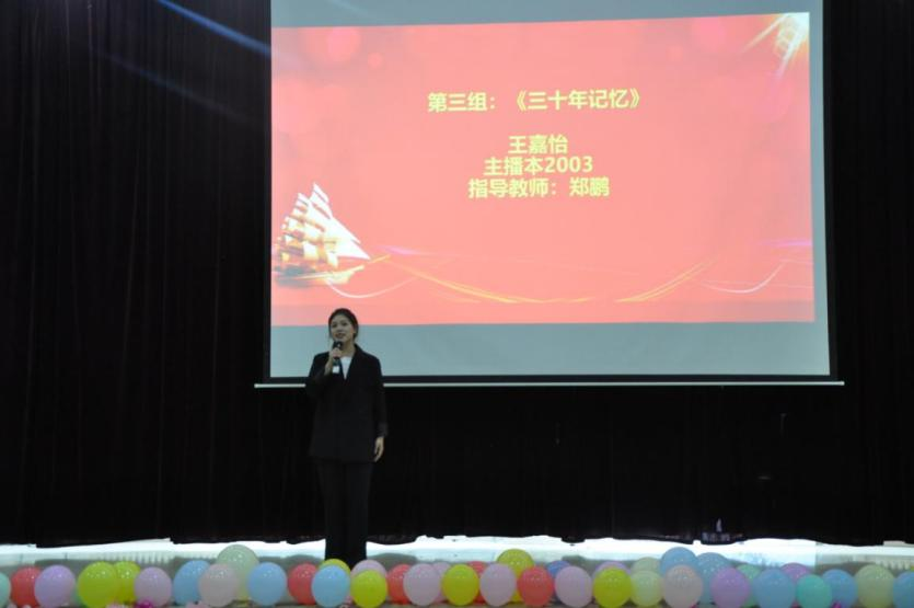 第一位上台的是来自主播本2003班的王鑫雨同学,他一开口便用他富有磁性的嗓音点燃了全场的热情。