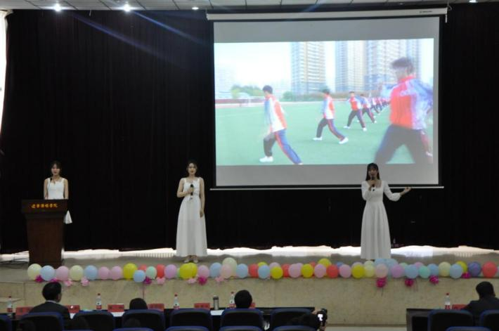 比赛接近尾声时,影视学院主播本2002班的宋宇晴、邵佳仪和李芳倩三位女生各着一袭白裙登场,优雅靓丽,声音优美,赢得在场观众的阵阵掌声。