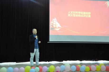 激动人心的比赛结束后,本次大赛专业负责人、初赛和决赛评委邓大军老师上台点评。邓老师谈了两个“感动”和三个“感谢”,从选手诗歌内容的原创水平和台上现场表演两个层面进行了精到的评论,为选手从初赛到决赛的成长和蜕变而感动,对在场评委、老师和同学们的全程积极参与表达了感谢。