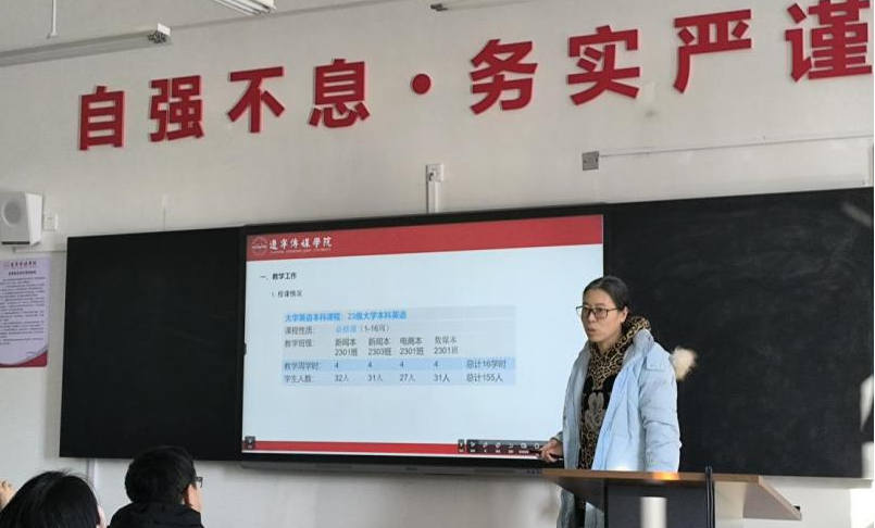 教师述职结束后,李晶副院长从以下四个方面进行全面总结。一是,对踊跃参与评奖评优的隋金平老师、获得国家级奖项的张娜老师以及赵明非老师给予表扬,对她们踏实工作,为人文学院争得荣誉表示感谢;二是,人文素养专项讲座取得良好效果,鼓励大家积极参与;三是,对本学期的代课教师们,如杨芙蓉老师,王娜老师、段琳琳老师等表示特别感谢,希望下学期大家能继续支持学院工作;四是,对学业指导教师们高质量地完成其工作表示认可和感谢。李晶副院长表示人文学院人才济济,新教师教学思维活跃,老教师教学经验丰富,应该各有其长,互补共进。