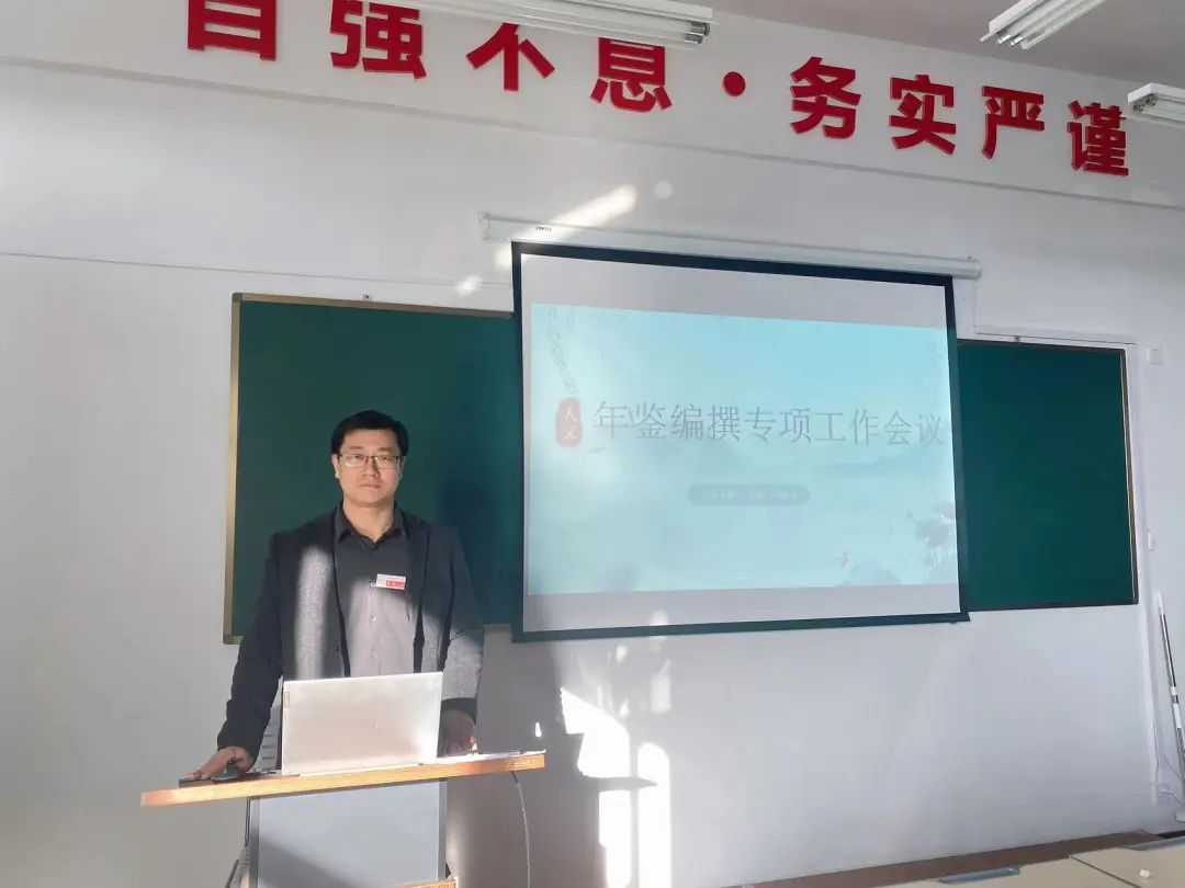 为保质保量完成《2023beat365在线唯一官网年鉴》编撰工作,4月3日下午4时,人文学院在人文楼312教室组织召开了《年鉴》编撰专项工作会议。人文学院吕元副院长及参与编撰《年鉴》的诸位教师参加此次会议,会议由吕元副院长主持。
