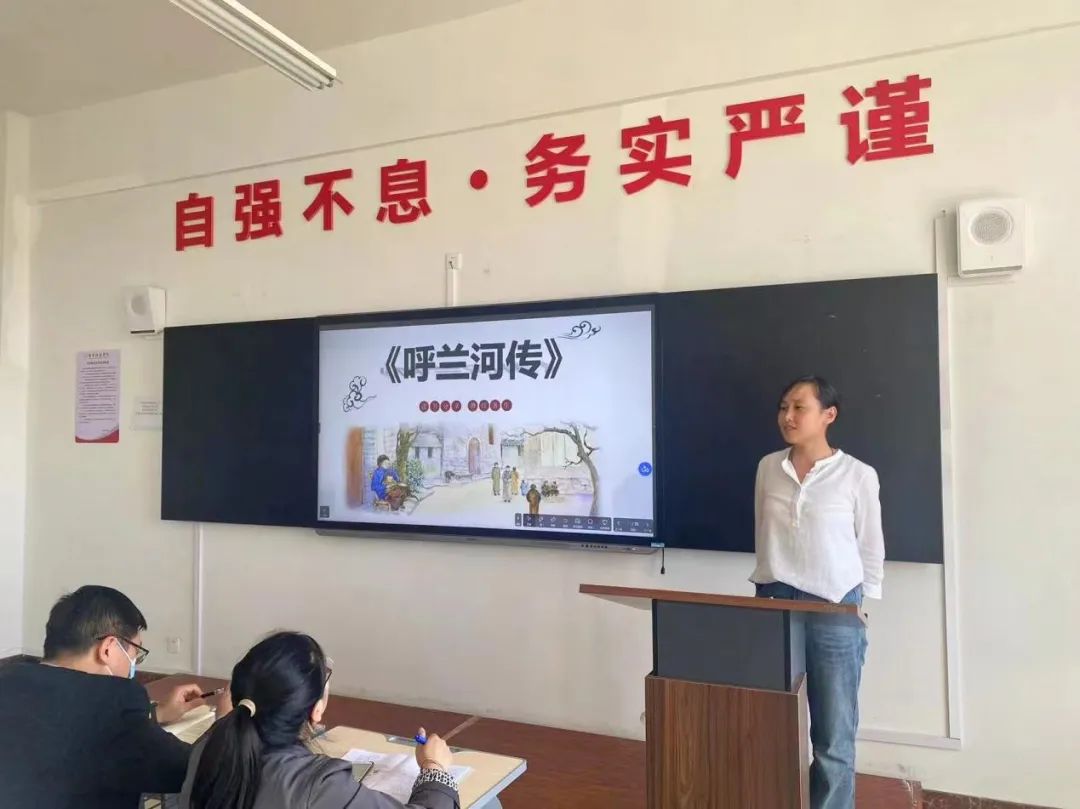 另一位教师刘菲菲从一个童年视角的角度,解读萧红的《呼兰河传》。她详细地阐述了通过童年视角描绘的社会现实与个人情感的复杂交织,展示了文学如何作为一种力量揭示历史与人性。她的分析不仅体现了深厚的学术背景,也彰显了对文学作品深刻的敏感度和理解力。