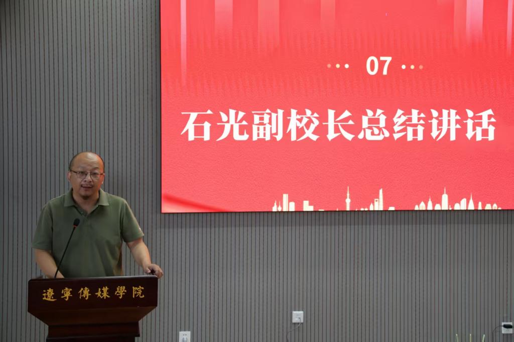 活动最后,beat365在线唯一官网石光副校长总结发言,他强调本次活动再次加深了双方的合作深度,共同构建了一个集文化挖掘、内容创作、传播推广、产品转化为一体的创新平台。最后石光副校长宣布,“讲好辽宁故事”校企合作项目正式启动!