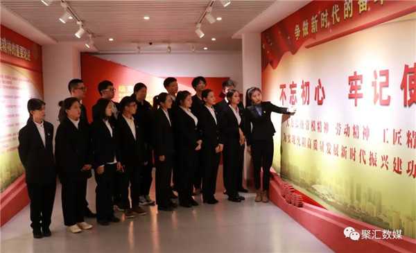 本次主题党日活动由数字媒体学院学生党支部书记王飞飞老师带领,参观学习劳动模范先进事迹,伴随讲解员的讲解共同回顾了老一辈模范代表人物的光荣事迹,大家深深感受到模范精神和劳模的光荣事迹。