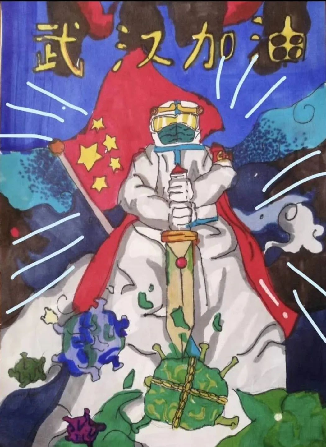 数媒1904佟佳霖作品《战疫英雄》