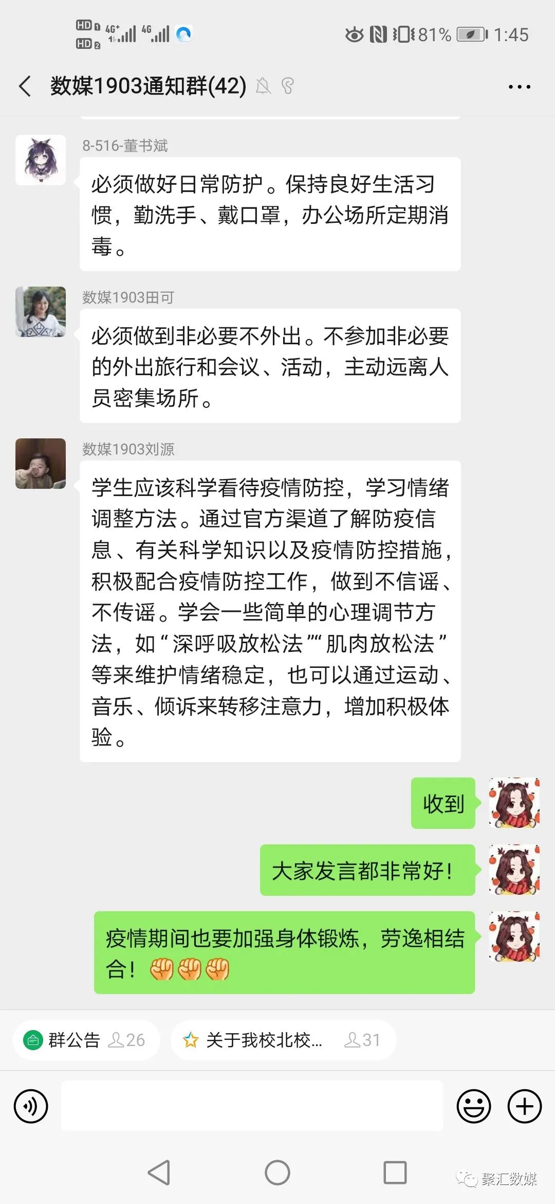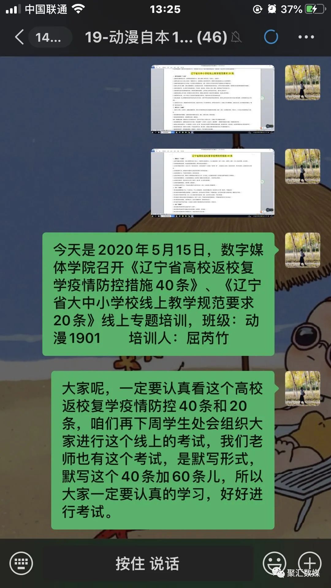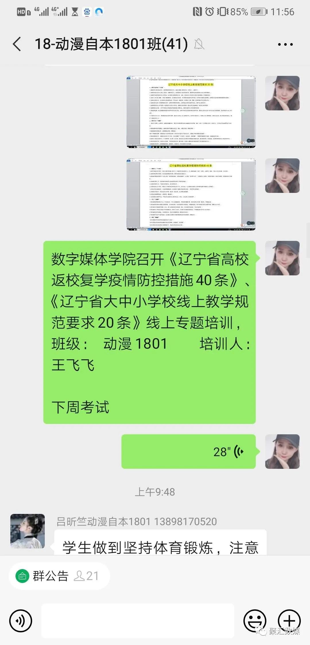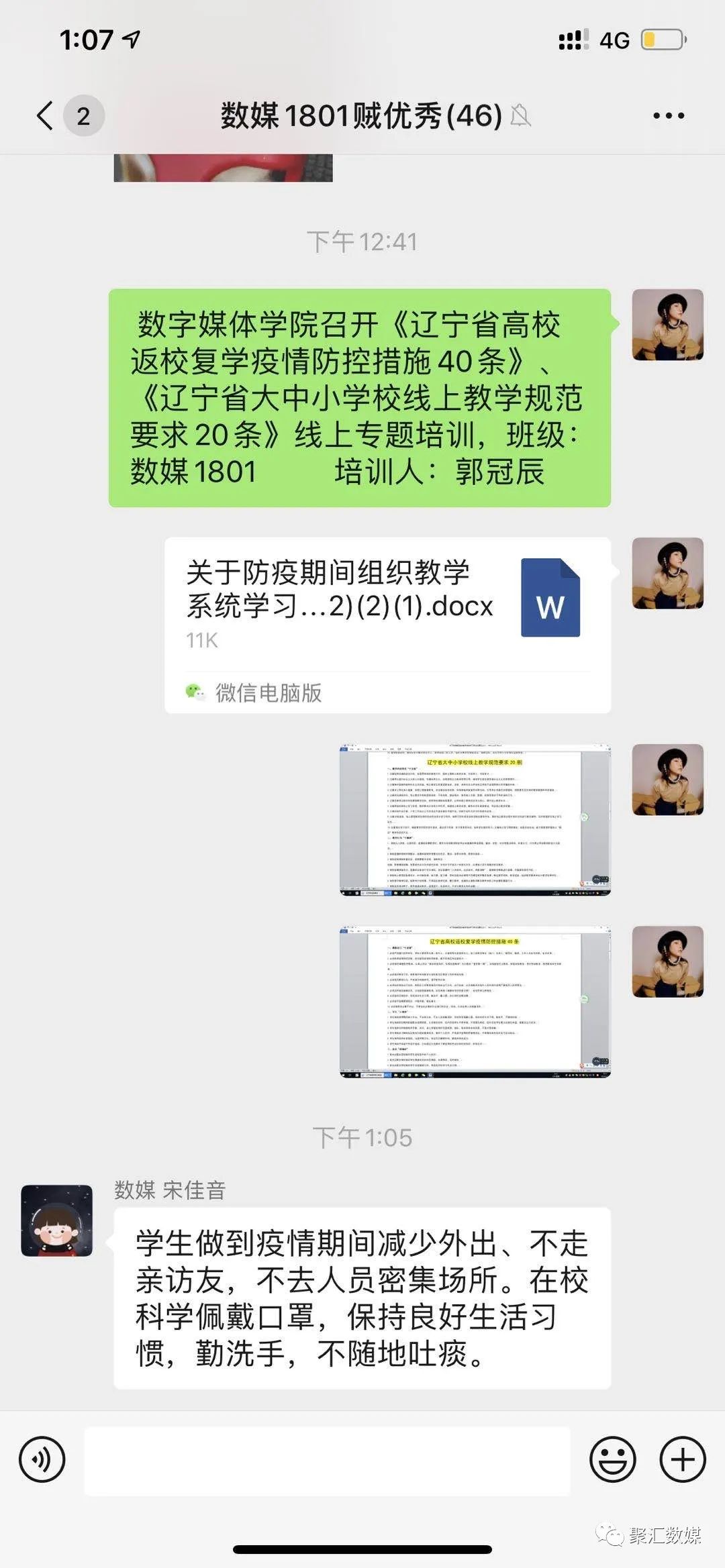 疫情就是命令,防控就是责任。为进一步做好新冠肺炎疫情防控工作,加强疫情防控相关知识和技能培训,切实做好开学前各项准备工作,5月15日上午,数字媒体学院的辅导员们积极落实开展了《辽宁省高校复学疫情防控措施40条》、《辽宁省大中小学校线上教学规范要求20条》疫情防控知识培训主题班会。