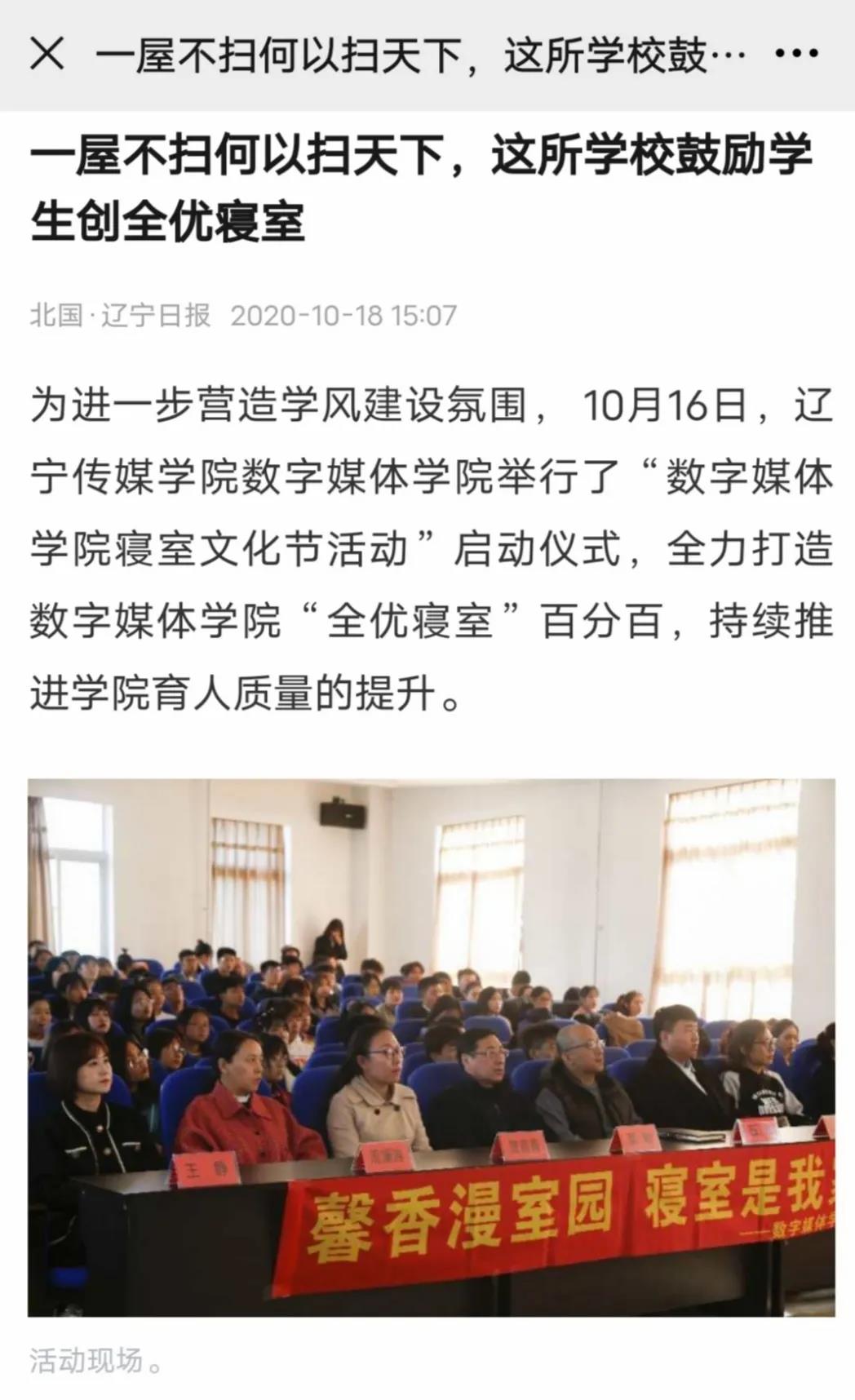 10月18日辽宁日报及新闻媒体报道beat365在线唯一官网数字媒体学院学风建设活动寝室启动仪式活动。