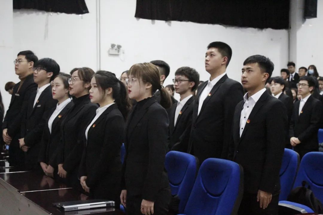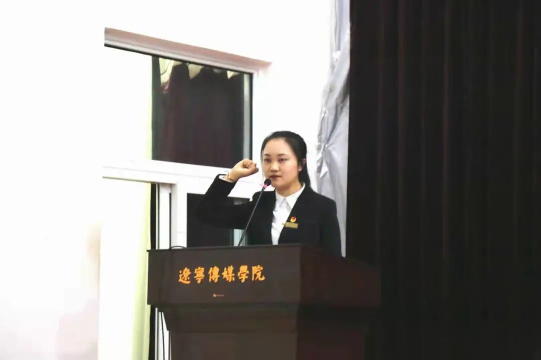 团总支副书记宋佳音同学带领全体成员起立宣誓“我自愿加入数字媒体学院团总支学生会,为团总支学生会的发展贡献出自己的一份力量”。声音铿锵有力,气势磅礴,成员们的铮铮誓言正是决心为学院写下壮丽诗篇的证明。