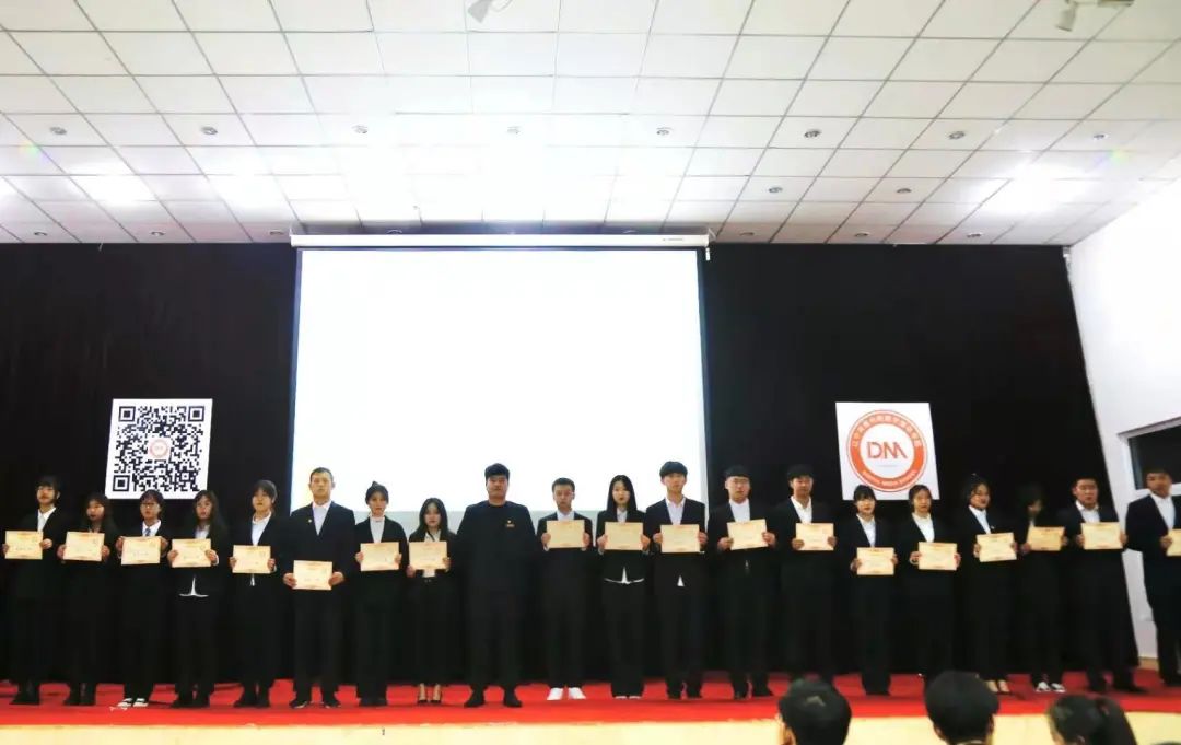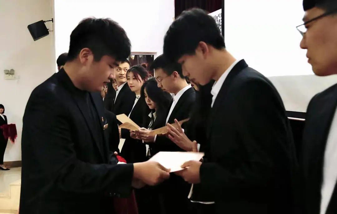 由团总支书记郭冠辰老师为部长颁发聘书并宣读优秀部员个人先进名单,为他们颁奖。接下来,由郭冠辰老师宣读公示第二届主席团成员,并开启授牌仪式。正所谓“在其位,谋其政,担其责”,相信大家的努力一定会让数字媒体学院蓬荜生辉。