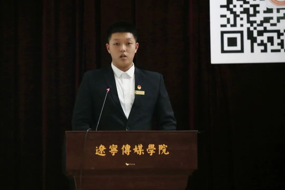 随后,郭冠辰老师上台总结发言。希望同学们以服务为己任,以身作则,善于创新,迎难而上,采取新举措,实现新突破,为使数字媒体学院变得更好而努力。