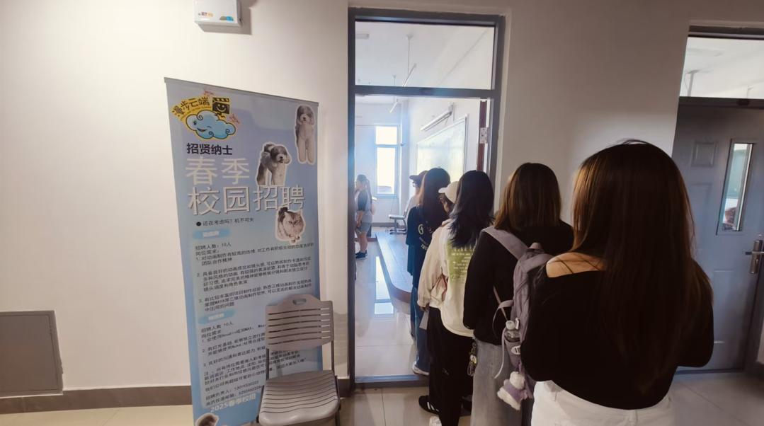 动画专业学生对沈阳漫步云端文化传播有限公司产生浓厚兴趣,积极参与面试交流。
