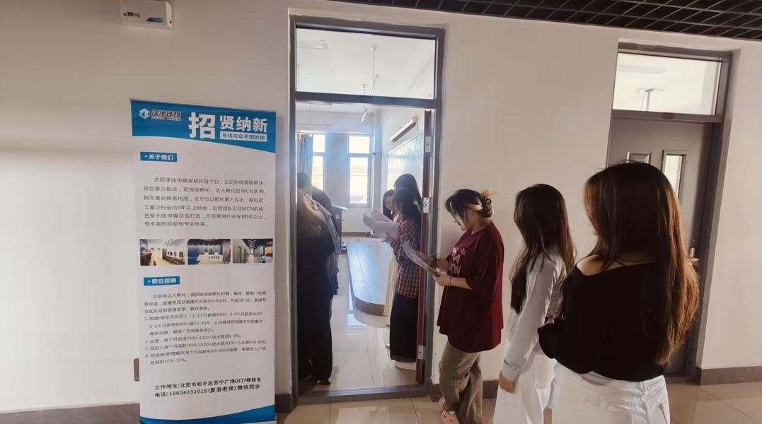 沈阳泽池文化传媒有限公司提供的视频剪辑岗位也吸引了学生驻足。
