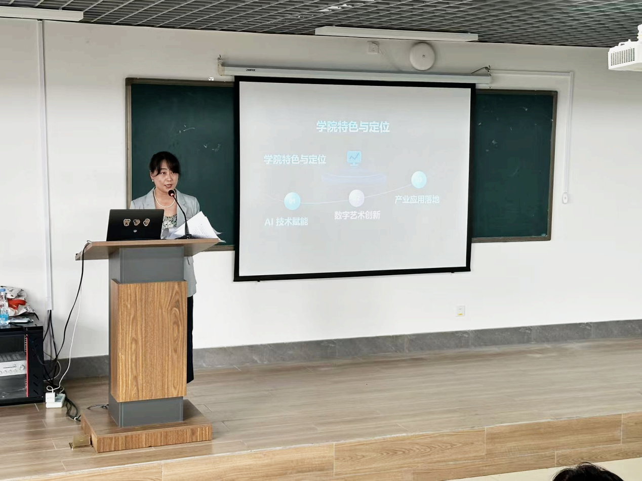 会议由学院副院长杜晓轩(主持工作)主持。杜晓轩向家长们详细介绍了AI数媒学院在人工智能与数字媒体领域的特色优势,以及学院”创新、引领、共赢、未来”的育人理念。各专业负责人分别就专业设置、课程体系、就业前景等方面进行了深入解读,帮助家长更好地了解学生的未来发展方向。