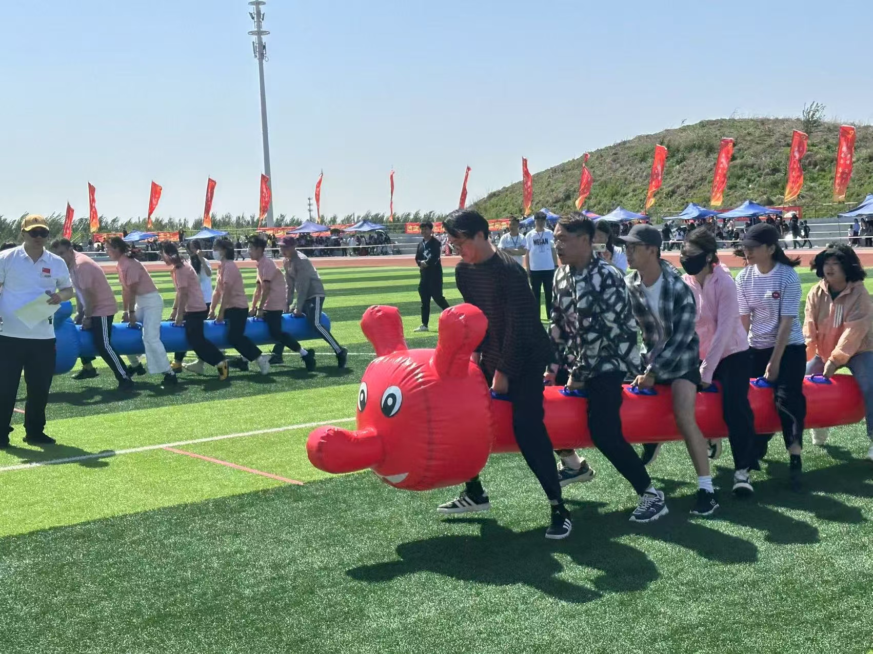 入场式上,来自各学院和职能部门的团体方阵各展新思、各彰所长,用响亮的口号与精彩的表演表达着对这场体育盛会的期待与热爱。