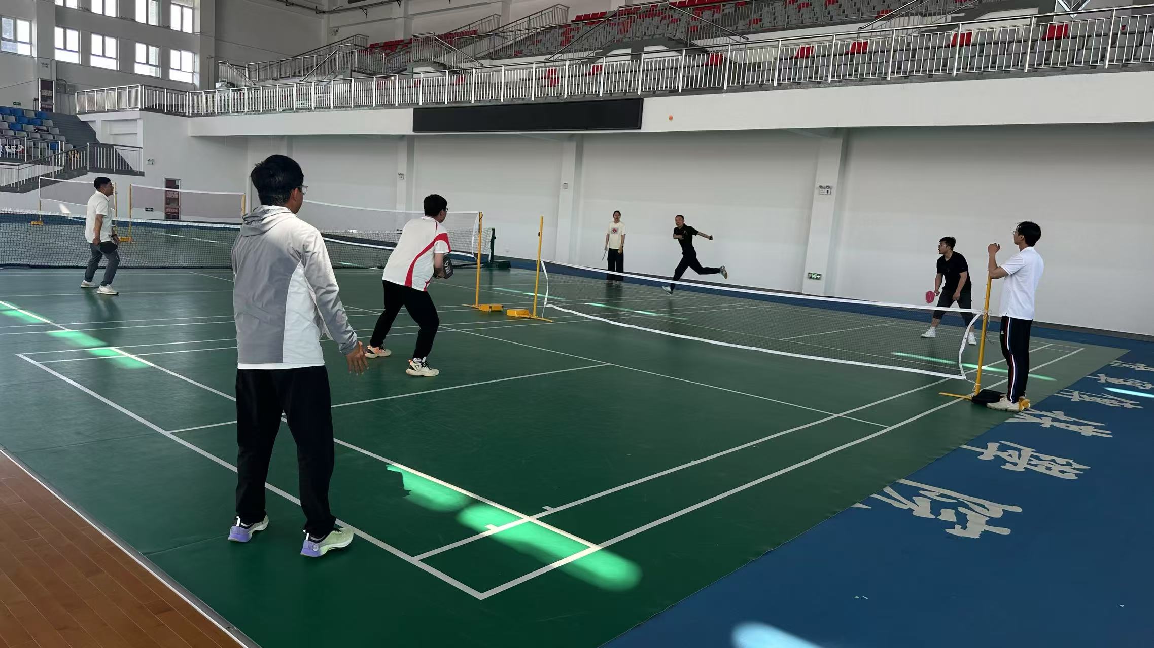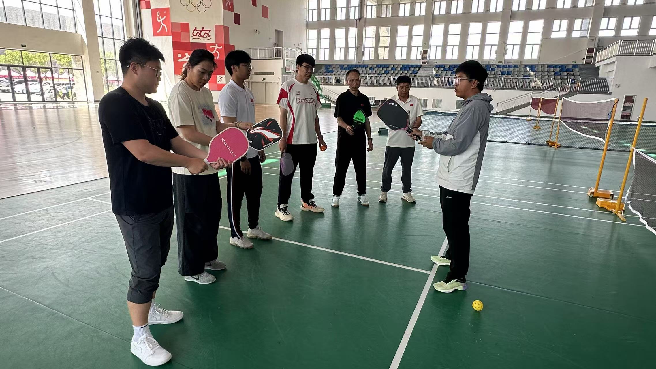 史丛刚老师对匹克球运动的起源、发展历程、开展现状与竞赛规则进行了全方位介绍;随后在实践环节中,亲自讲解示范了匹克球持拍姿势、挥拍动作、发球演练等关键技术,通过理论与实践相结合的方式,与全体教师进行了全面的技术交流与指导。