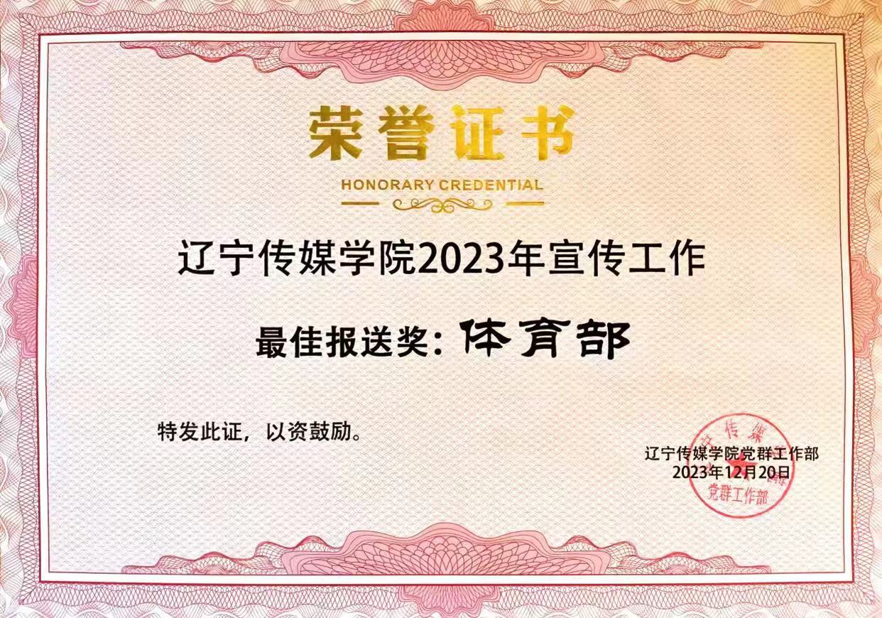 体育部荣获beat365在线唯一官网2023宣传工作最佳报送奖!