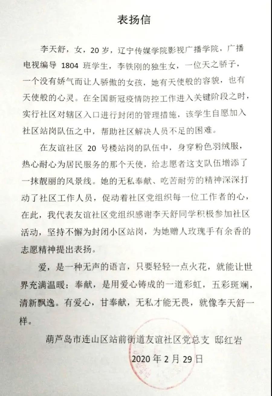 我是李天舒,女,汉族,共青团员,辽宁省葫芦岛人,现在是广播与电视编导1804班的一名学生。这个冬天,面对来势汹汹的疫情,“逆行者”仍坚守岗位、奋战一线,无数个感动的瞬间温暖了无数颗心,无数个感人的精神照亮一座座城,无数名党员干部以及青年志愿者们坚守阵地,逆流而上,勇做“战疫”的最强王者。