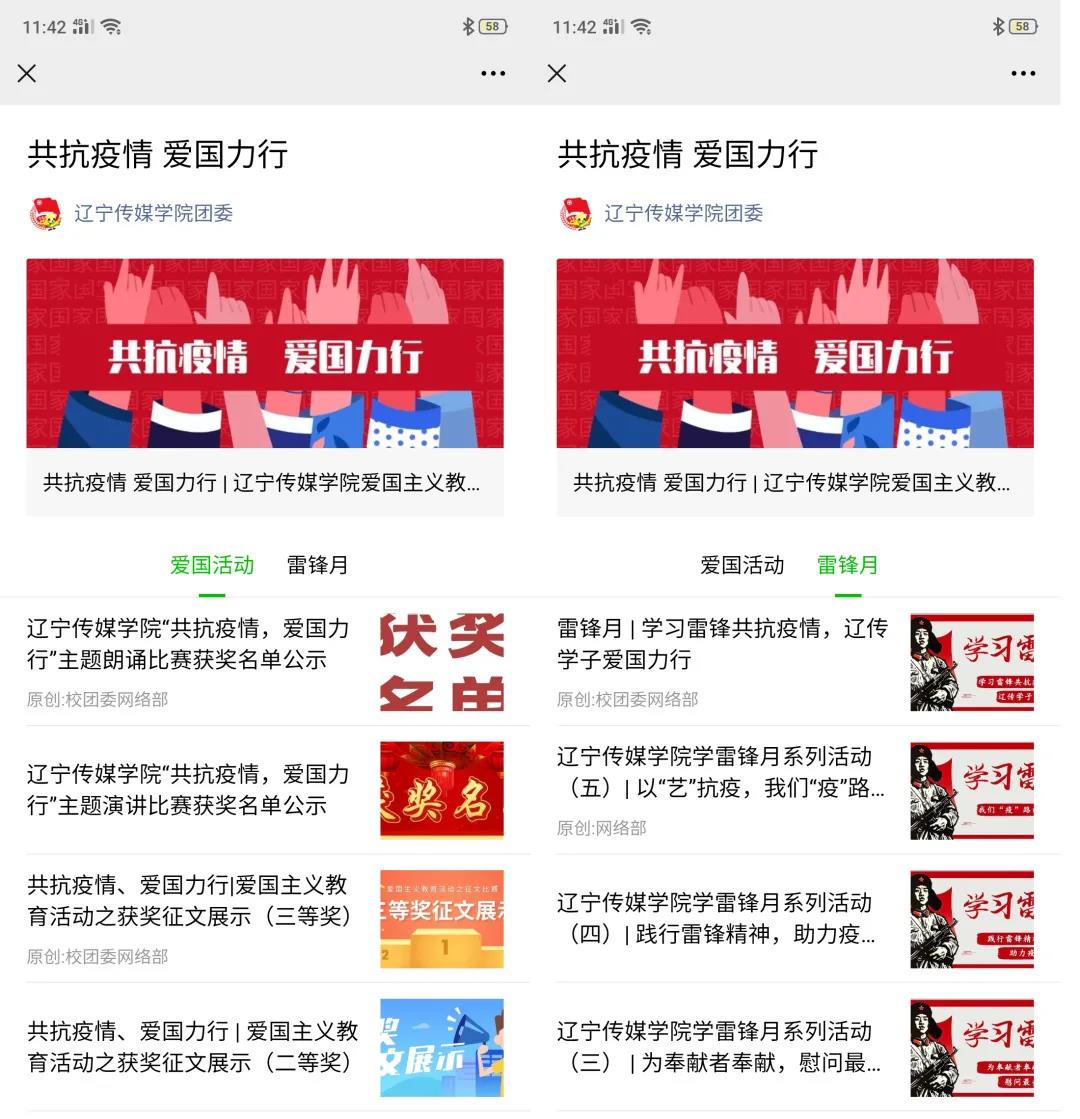 从活动开始至今,跟随校团委广泛发动、深入动员,积极利用社交媒体、视频网站等传播平台,对主题宣传教育成果进行深入推广。推动形成和完善全员参与的爱国主义教育架构,扩大覆盖,统筹资源,对主题宣传教育成果进行充分展示。充分利用微信公众平台进行传播,在校内形成网络新媒体矩阵,带动各团学组织制作新媒体作品百余篇。利用抖音、快手等自媒体平台,有效加大宣传力度,扩大“共抗疫情、爱国力行”主题宣传教育的影响力,加入辽宁易班,形成集群效应,真正的打好矩阵的旗帜。