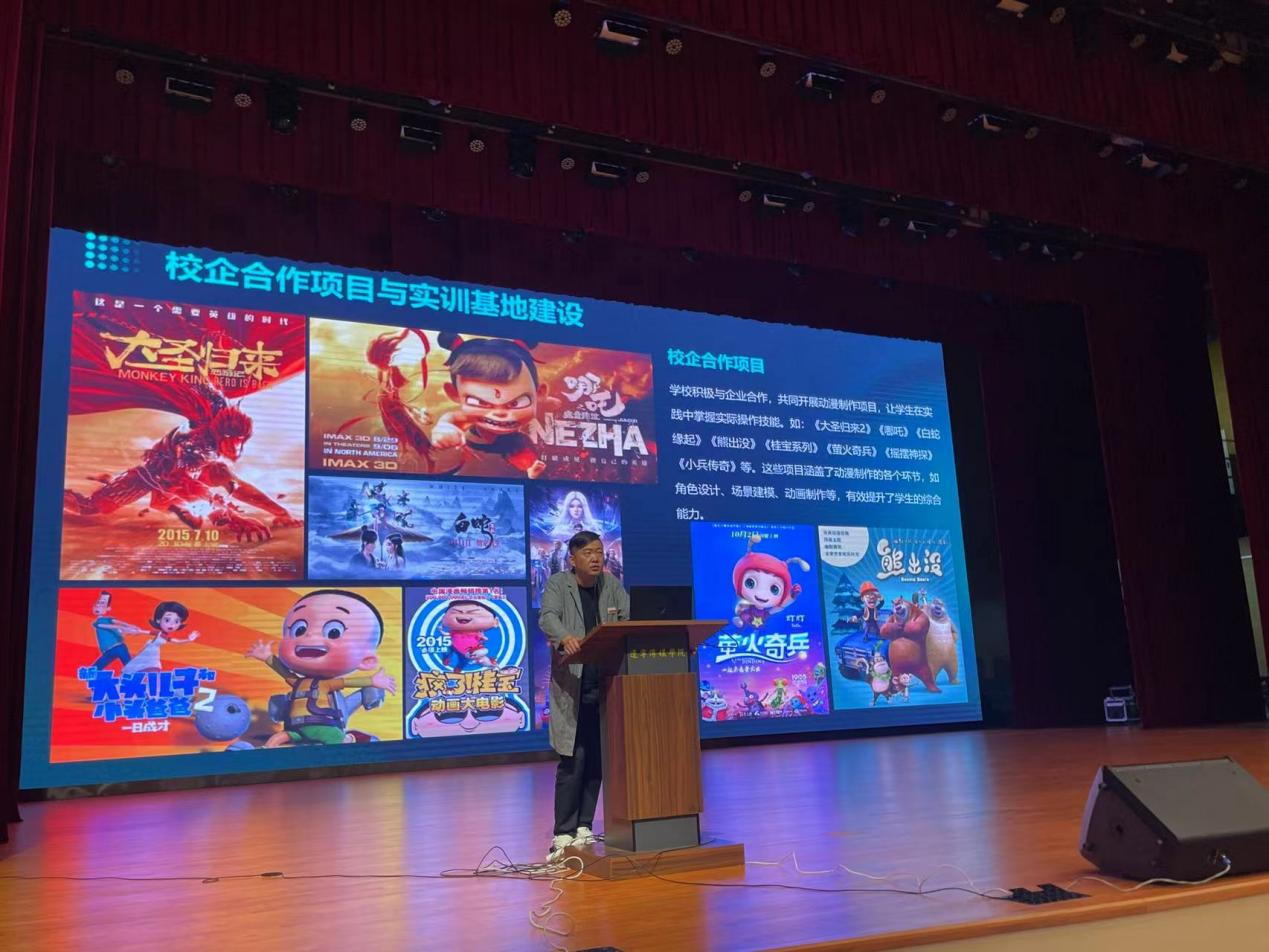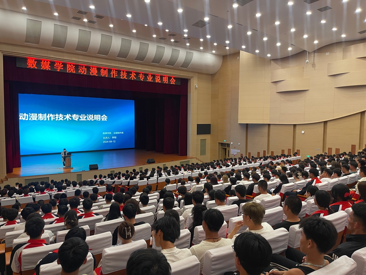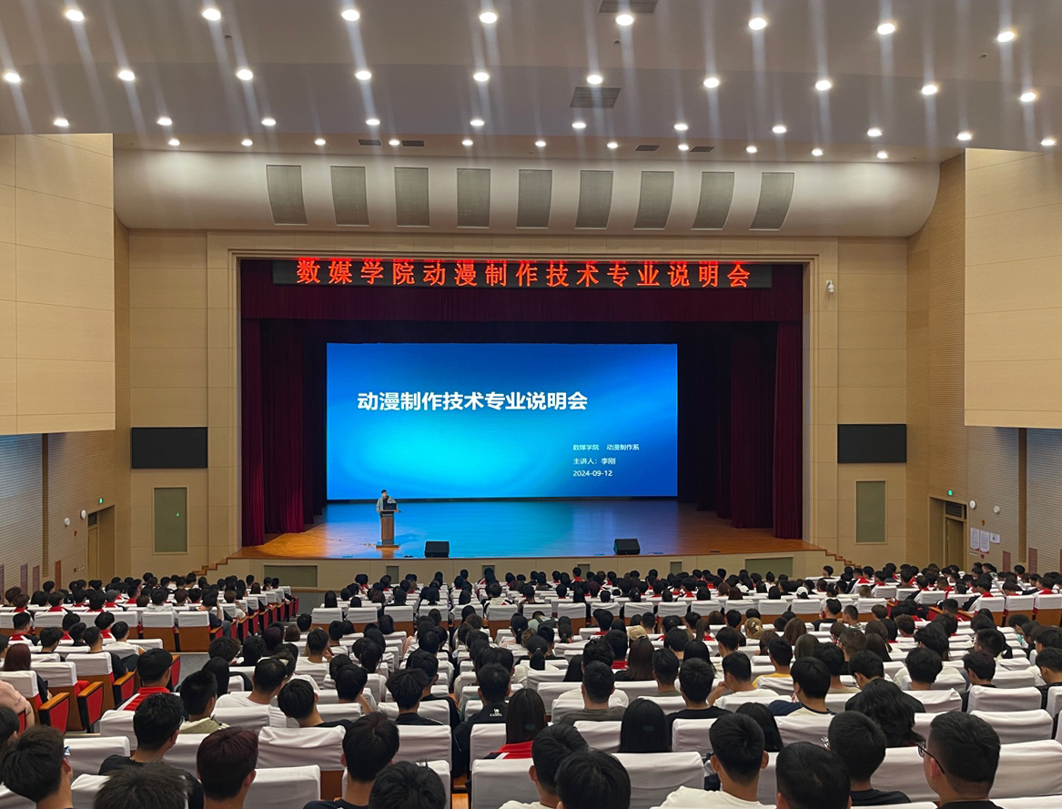 9月11日,数媒学院动漫制作技术专业说明会在辽传实验剧场如期举行,数媒学院杜晓轩、张鼎一副院长,支部书记王飞飞、动漫系主任李刚,以及2024级1200余名新生全部到场参会。在会上,数媒学院动漫系的李刚主任对动漫制作技术专业进行了全面的讲解,强调动漫制作技术专业是一个将艺术创意与先进科技紧密结合的领域,在专业学习中,学生们将掌握如何让一个虚构的故事转化为栩栩如生的动画作品的技能。
