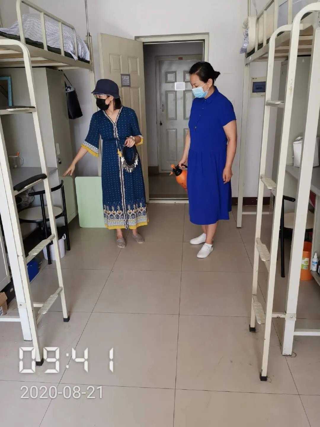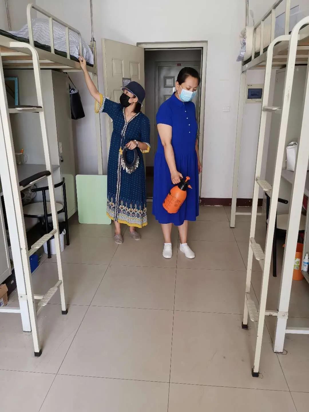 为坚决遏制疫情在校园内反弹、扩散,紧绷疫情防控常态化这根弦,保证大家返校当日和返校之后相关工作有序科学进行,在大家抵校的前一天我们的辅导员老师们对寝室进行了全覆盖的预防性消毒,保障同学们的在校安全。