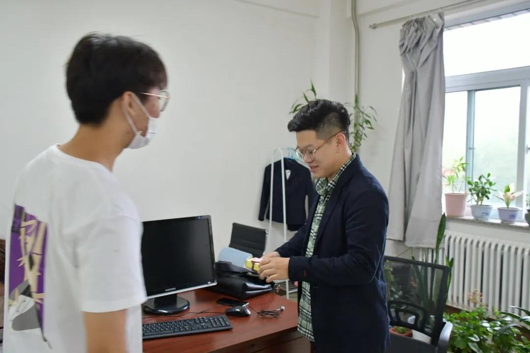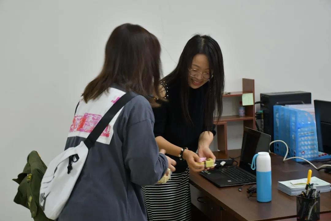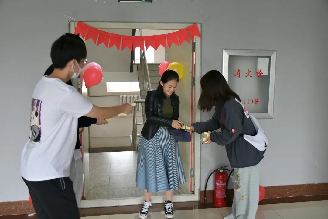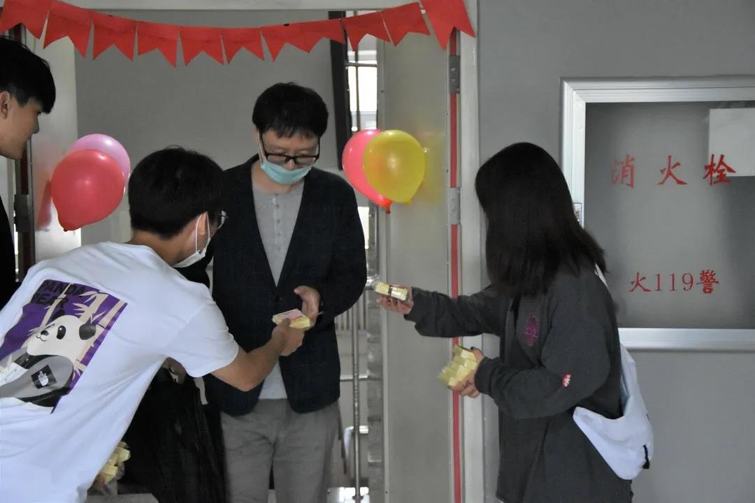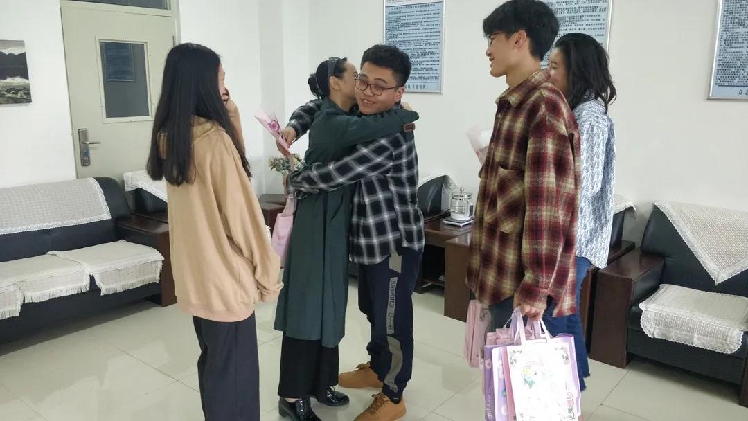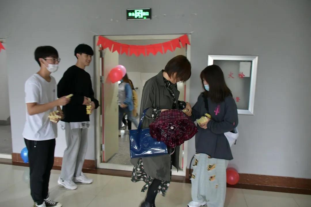 清晨,新闻传播学院学生来到老师办公室,精心准备了小礼物,向老师送去了节日的祝福,表达了对老师的感谢。