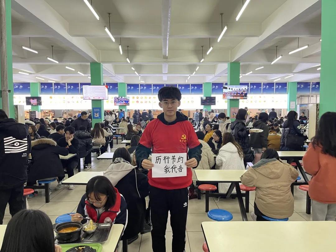 在“厉行节约,我代言”的活动中,学生党员积极在光盘行动中贡献自己的一份力量,向食堂负责人和用餐学生宣传节约粮食,号召老师学生坚持合理消费,珍惜粮食,杜绝浪费,点餐适量,剩菜打包,为消除奢侈浪费之风奉献自己的一份力量!
