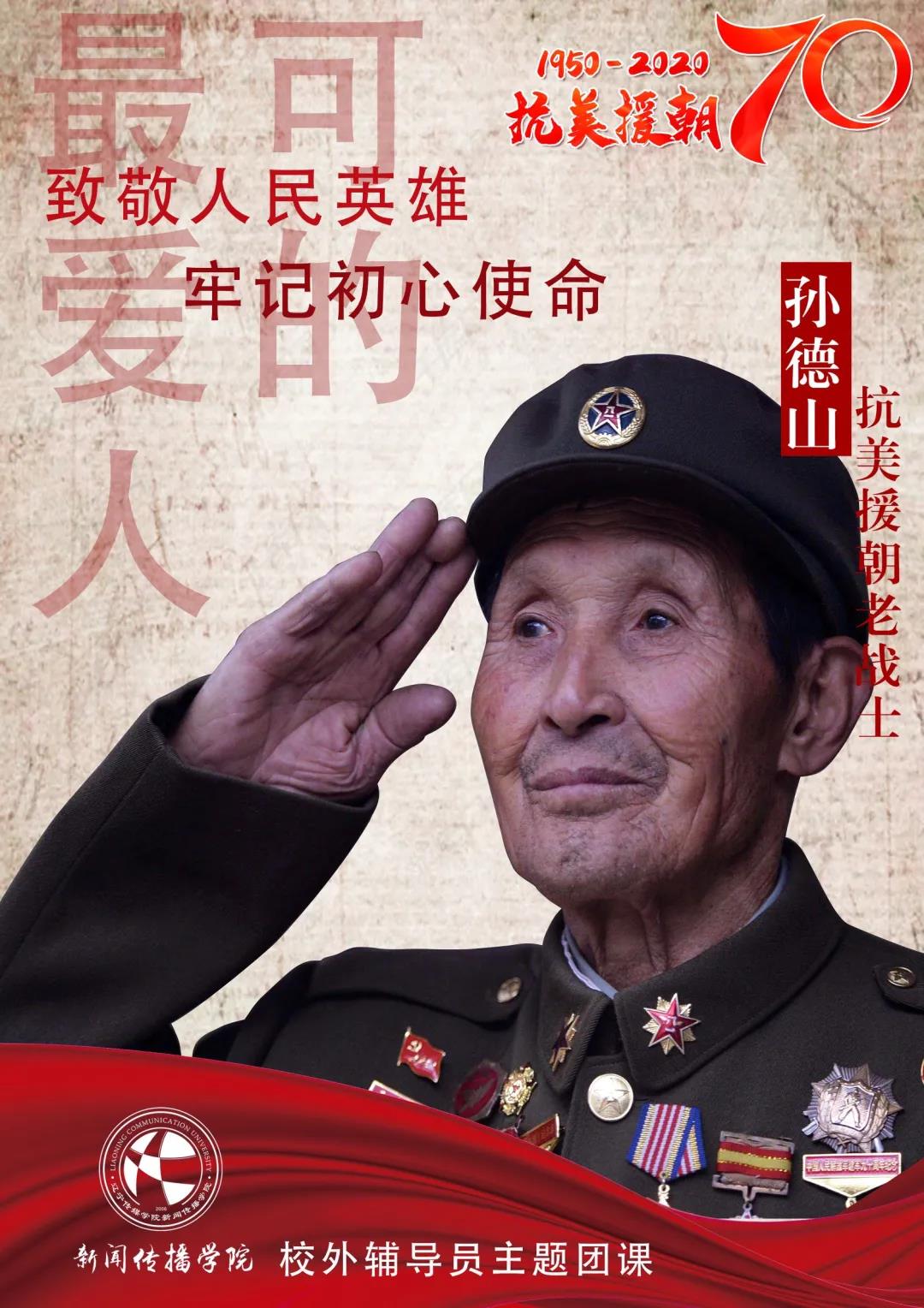 为大力弘扬英勇顽强、舍生忘死的爱国主义抗美援朝精神,教育学生传承红色基因,营造全社会尊崇英雄的良好风尚,11月27日,beat365在线唯一官网新闻传播学院邀请到抗美援朝老战士孙德山,他用亲身经历为新闻传播学院的学生团员们讲述了一堂生动的爱国主义主题团课。