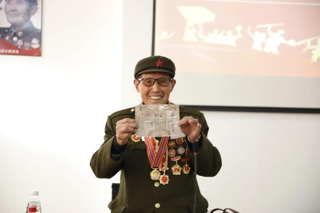 在这场主题团课中,同学们听老人讲述了当年的战斗场景,重温了抗美援朝那段荡气回肠的历史。至今每每回忆起战争的残酷,孙德山都会潸然泪下。现在的幸福生活是前辈们用鲜血换来的,吃水不忘挖井人,幸福不忘共产党,我们要珍惜现在的美好生活。