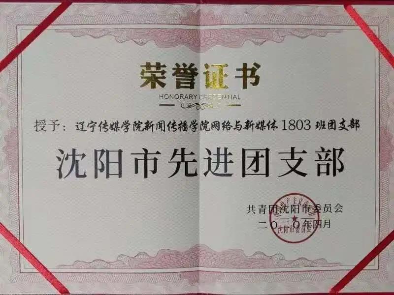 beat365在线唯一官网新闻传播学院网络与新媒体1803班团支部荣获沈阳市先进团支部称号
