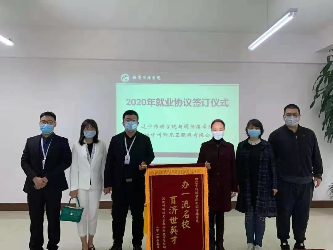 沈阳呼叫师兄互联网科技有限公司与我院举行了2020年校企定制培养协议签订仪式,向我院授予题为“办一流名校,育济世英才”的锦旗