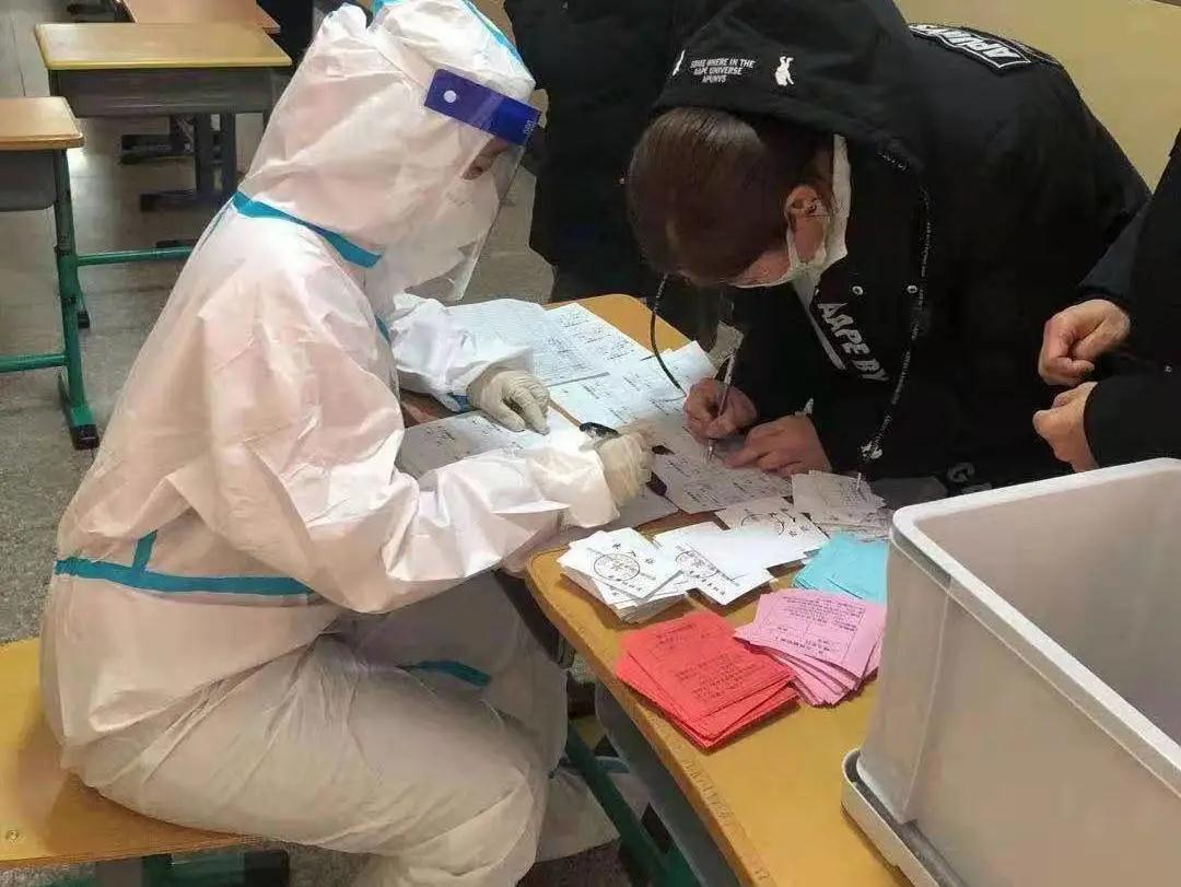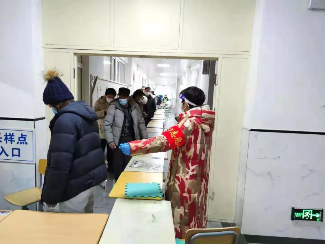 我负责的是检测点的秩序维持和收录居民信息工作,从下午一点到晚上八点,大概七个小时,在检测还没开始的时候,我和另外一位志愿者把歪歪扭扭的桌子摆成蛇形走道,让前来检测的人们能排更长的队伍。整整八个小时我都在维持秩序,人稍微多点之后,我便不记得我喊了多少遍“直走右转采集室”“人员保持一米以上的距离”“一家人也不可以靠得太近”“保留好园区出入证,持卡人写自己名字”,喊到最后嗓子都哑了,虽然工作期间社区给我们提供了工作餐,但到最后还是累的不想说话,虽然人少的时候可以坐在椅子上一会,但人多起来就得不断指挥人们往采集室走,还要安抚因为等待而焦急的人们,真的很累,但在我看来这是值得的,看着检测结束的人们离开检测点,心里特别欣慰,感觉再累也是值得的。