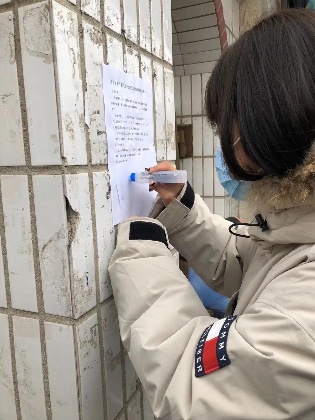 疫情当下,鞍山组织全市居民进行核酸检测工作,得知召集志愿者之时,张馨艺同学便积极报名。虽然参加志愿服务的人数众多,但工作量依然很大,统计核酸检测人数达到二百多户,需挨家挨户走访排查,工作十分劳累。21号上午七点到十二点,社区开始分点进行核酸检测。张馨艺同学作为志愿者前去帮忙组织秩序,连续工作五小时,虽然工作过程很辛苦,但是一天度过的十分充实。
