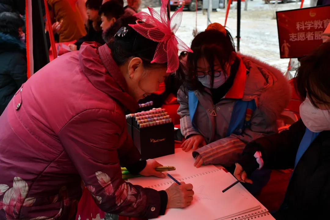 辽传志愿者现场展示了科学教育宣讲、美术培训、基层社区美化等志愿服务项目。