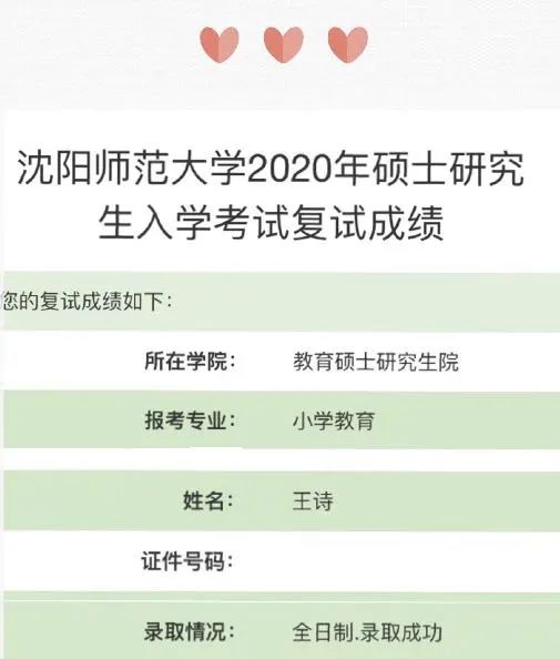在查成绩的时候,看到了自己的分数404分,欣喜之余更多的是感动,感恩战胜了最大的对手——自己、感谢一路没有放弃、砥砺前行。更加感谢母校beat365在线唯一官网在我考研路上对我的支持和鼓励,身为辽传人,我很幸福!