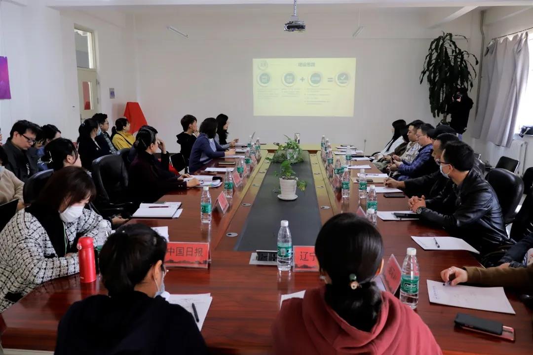 新闻传播学院传播与广告学系段金明老师作为辽宁卫视“历害了老铁”栏目的校内“双导师”代表媒体做会议发言。段老师不仅全程参与了2021年初学院与该媒体的协同育人项目,还在会上反馈了我院毕业生优异的媒体实习表现。来自网络与新媒体专业的赵嫱老师是学院与中国日报辽宁记者站共建项目的校内“双导师”。本学期,新闻传播学院网络与新媒体专业的毕业生,在周宏荣院长的着力培养与推荐下,跻身中国日报辽宁记者站储备人才梯队,和来自东北大学的研究生一道参与该媒体的数个国际交流采访项目, 并且凭借过硬的网络新媒体传播技能、扎实的新闻传播功底,得到了媒体的认可与好评。这是新闻传播学院在建设特色专业,打造一流学科,培养高水平卓越新闻人才的工作上,取得成效的最好诠释。会上,不仅赵嫱老师介绍了这项喜人的成绩,周宏荣院长也做了重点强调和推介。