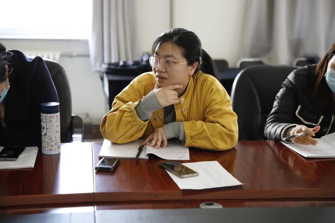 孙妍老师在会上针对课程建设提出了宝贵意见,她指出,学生在第一到第二学期每学期的课程的数量不易过多,过多导致学生不易掌握,给学生充足课后的学习时间,要让学生在步入大学初期养成主动学,动手学的好习惯。