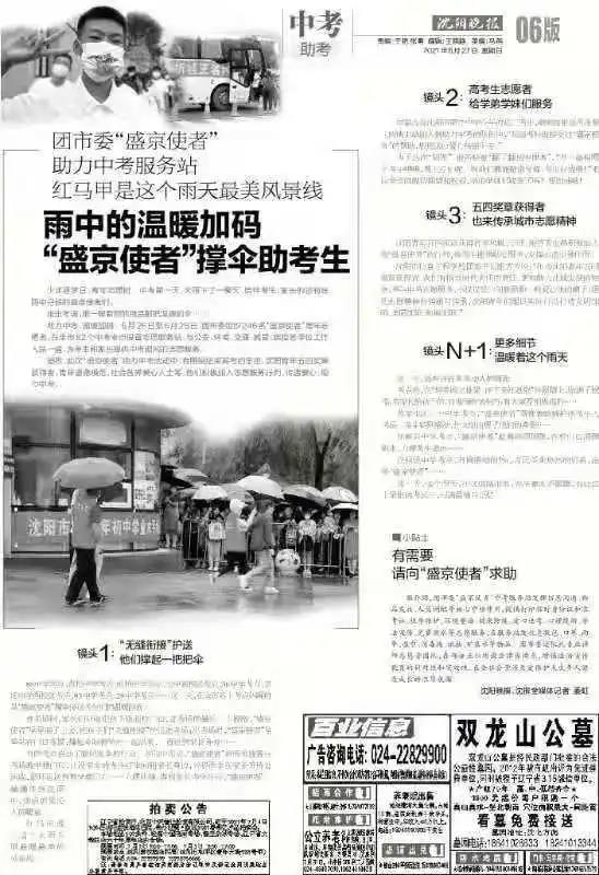 6月26日至6月28日,团市委组织246名“盛京使者”青年志愿者,在全市82个中考考点设置志愿服务站,与公安、环境、交通、城管、疾控等单位工作人员一道,为考生和家长提供中考期间的志愿服务。