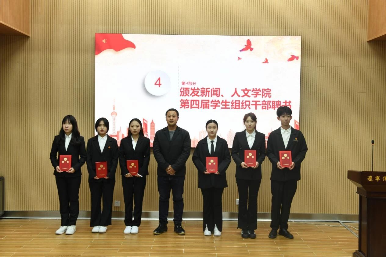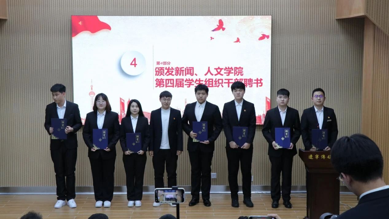 人文学院辅导员冯茂森为新闻、人文学院第四届校园文化部、朋辈工作部、奖助勤工部部长颁发聘书