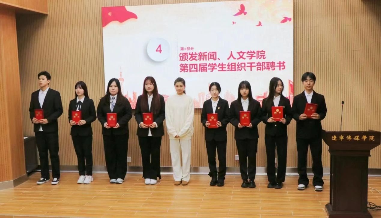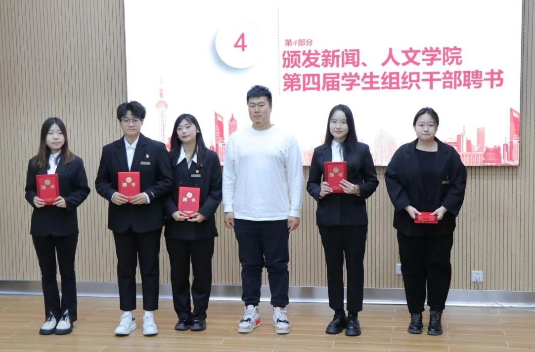 新闻学院辅导员王君竹为新闻、人文学院第四届文体部、社团部、权益部部长颁发聘书