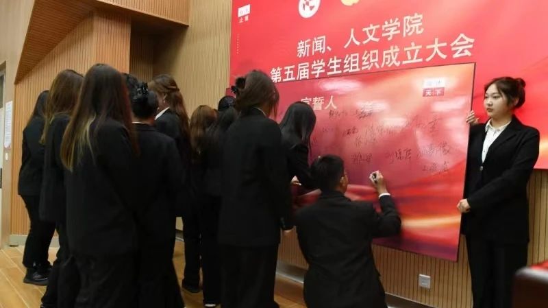 新闻、人文第五届团总支、学生会、自管会主席团和部长签署承诺书