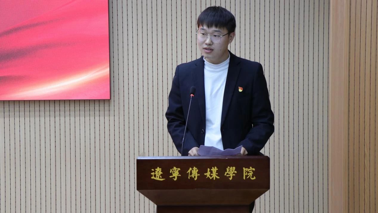第四届学生组织代表-学生会主席宋子轩进行发言:“过去的一年里,新闻学院、人文学院共组织3期团中央“三下乡”社会实践活动。团队在2022年-2023年获批10余项国家级重点、示范、专项团队。实践育人品牌项目被国家通讯社新华社专题报道,人民日报、中国日报、中国新闻网、中国青年网等各级媒体刊发专题报道40余篇,阅读量近千万并与沈阳市科学馆、沈北新区团区委等单位深入开展合作,组织参与志愿服务工作,累计参与人次1000余人,志愿服务时长600小时。希望我们新一届团总支、学生会、自管会的所有同学们将我们优秀的新闻精神继续传承下去,把新闻情怀融入到青春血液,用你们的坚持、恒心和热爱做好崭新一代的追梦辽传人!”