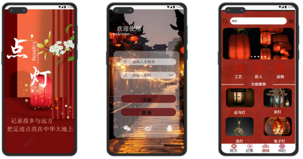 创意说明:点灯App秉持着传承非遗花灯而创作,我们利用国风的形式,与各地花灯惟妙惟肖的景象相碰撞,带大家走进花灯的精彩世界,呼吁人们对非遗的关注与传承。同时本产品面向国际,更助于中华优秀传统文化的对外输出。
