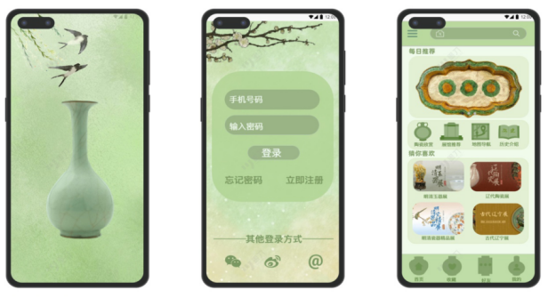 创意说明:本款APP是一款推广辽宁省非物质文化遗产一一辽瓷的APP,旨在挖掘辽宁省的非物质文化遗产,介绍传播非物质文化非遗知识。随着社会的发展时代不断进步一些传统手工艺面临失传,本APP通过软件可在线模拟辽瓷制作过程,旨在推广发扬辽瓷这一非遗文化。