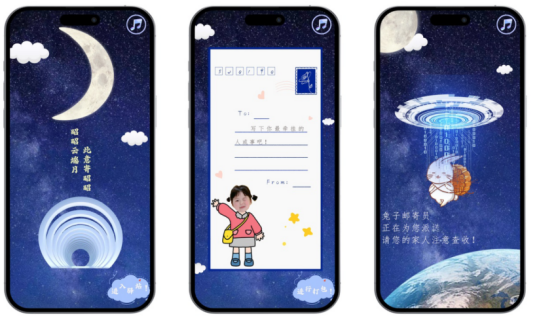 创意说明:设计以中华老字号稻香村作为创意主题,蓝色、白色和金黄为主色调,结合了月亮、地球和飞船等元素,突出展示了一场奇妙梦幻的糕点之旅,将动画和实物结合,展现童趣和生动的特点,希望通过这一设计,能更好的体现稻香村独特的魅力。