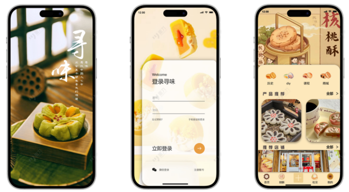 创意说明:该作品“寻味”用引导界面,登陆界面,主界面更好地宣博传统稻香村非遗技艺,让更多的人了解并爱上非遗文化。寻找美味,寻找古与今碰撞的味道,这便是“寻味”的初心,非遗文化产品从没有被遗忘,寻味,寻找中国人心中从古至今都未丢失的味道。