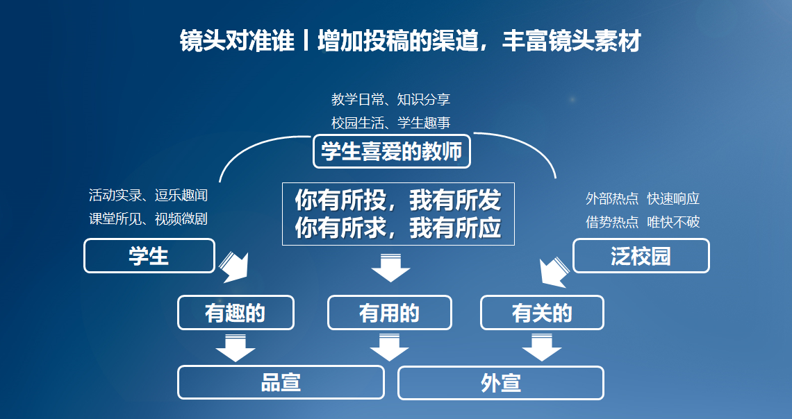 (1)强化热点运营,挖掘高校账号的特点,做爆点、创热点,根据每个月的校园生活节点制订一个宣传主题,围绕主题开展内容运营。