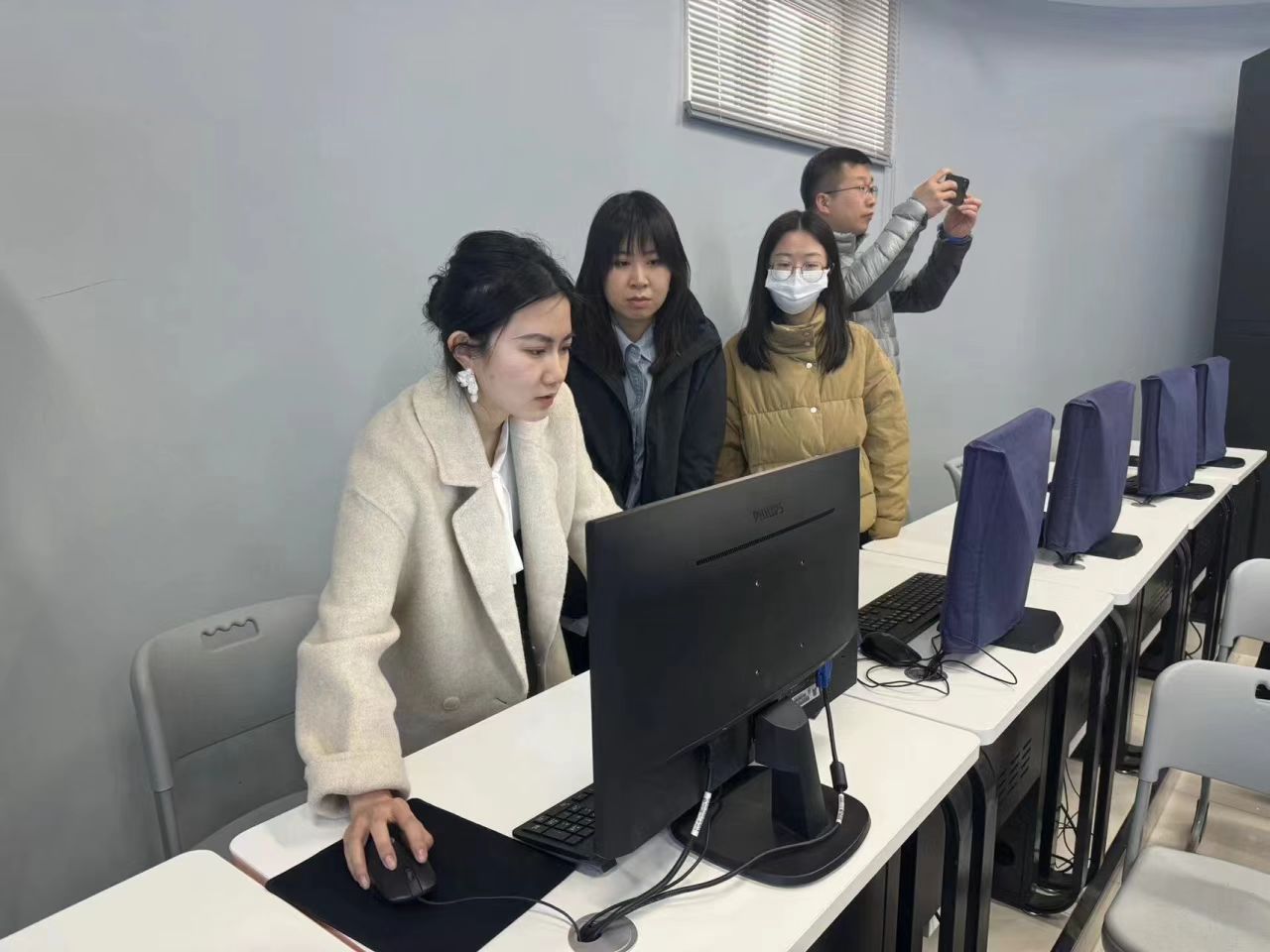 在学习过程中,新闻学院院长刘畅关注每一位教师的学习情况。她鼓励教师们要敢于尝试、勇于创新,将所学知识运用到实际工作中去。此次学习活动不仅是一次技能提升的机会,更是一次思想碰撞和交流的盛会。老师们纷纷表示,在融媒体环境下,教师不仅要掌握传统新闻采编技能,更要适应新技术条件下的多元多端传播方式,以课堂为载体,充分培养学生的融媒体思维和实战能力;在今后的教学实践中,积极依托实训室开展个性化教学,为今后更好地引导和指导学生投身融媒体实践,培养新时代复合型传媒人才奠定坚实基础。