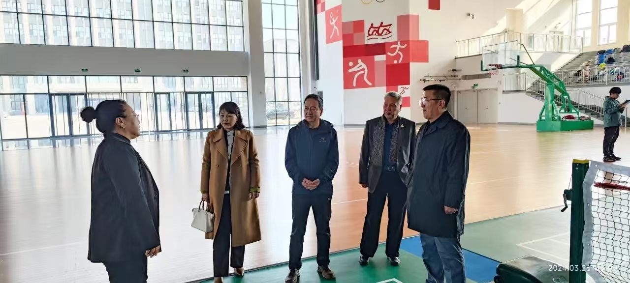 党群工作部陈雪玢副主任向来访客人介绍辽传文体馆