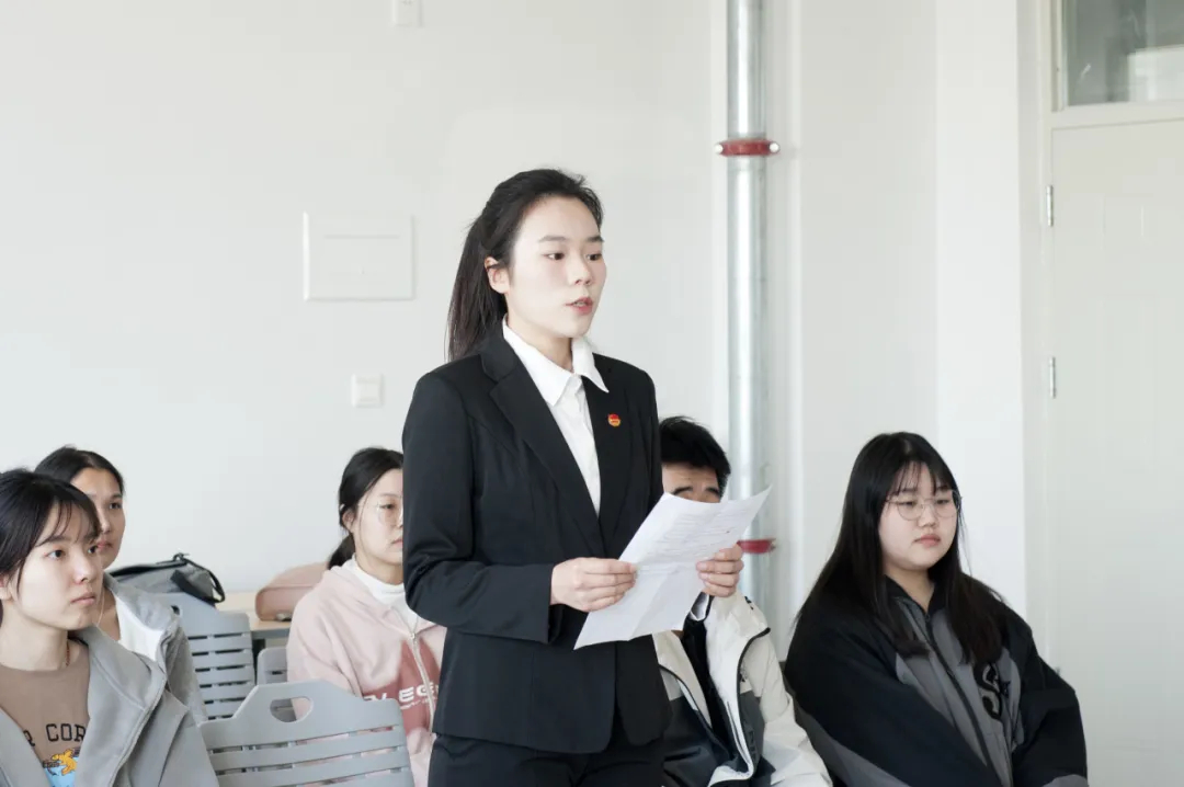 新闻学院学生代表张盟表达了对学院悉心培养的感激之情,分享了她在产教结合的项目中的工作心得,表示将以此为契机,继续努力,不断提升自我,为实现理想继续前行。