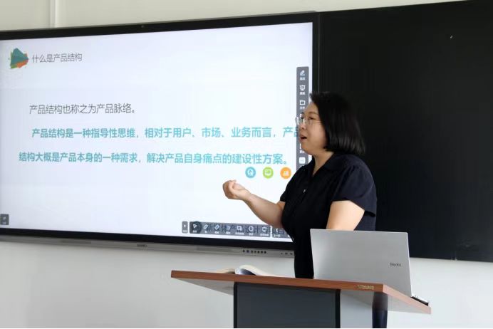 来自网络与新媒体系的赵英华老师首先登台,她结合具体案例给大家详细讲解新媒体产品的功能与设计。用户体验是产品设计最为重要的因素,良好的用户体验能够吸引用户,提升用户的满意度和忠诚度。这就要求学生在产品设计中要重视符合用户需求的功能设计,保证产品的易用性和实用性。赵英华老师对微信、腾讯新闻、小红书等新媒体的产品结构、功能特点以及用户体验做了分析和讲解,让学生深入了解了新媒体产品的实际运营和设计思路,整个授课过程生动、直观。